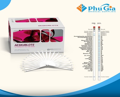 AESKUBLOTS Allergy EIGHT, insan serumu ve plazmasında birden fazla alerjene karşı IgE antikorlarının ve toplam IgE'nin kantitatif tespiti için membran bazlı bir enzim immünolojik testidir. Antijenler, nitroselüloz bir membran üzerinde tam olarak tanımlanmış konumlarda paralel çizgiler halinde yerleştirilir. Bu test, Tip I aşırı duyarlılığın (alerji) ayırıcı tanısında bir araçtır.
